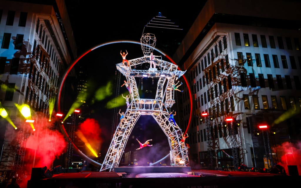 Montreal Completement Cirque is a festival celebrating the art of contemporary circus through captivating shows, workshops, and outdoor performances. Numerous street performances take place throughout the city, including the iconic spectacle LA GÉANTE at Place Ville-Marie, returning for this edition.